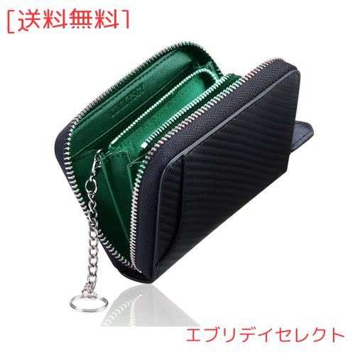 小銭入れ メンズ 本革 コインケース ミニ財布 8カード入れ キーリング付き 財布 コンパクト 小さい財布 カーボンレザー (カーボンブラッ