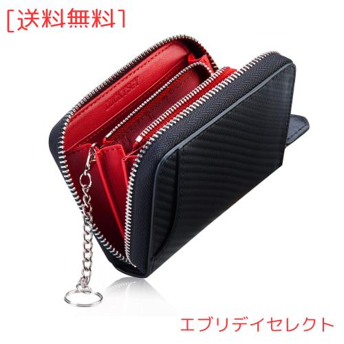 小銭入れ メンズ 本革 コインケース ミニ財布 8カード入れ キーリング付き 財布 コンパクト 小さい財布 カーボンレザー (カーボンブラッ