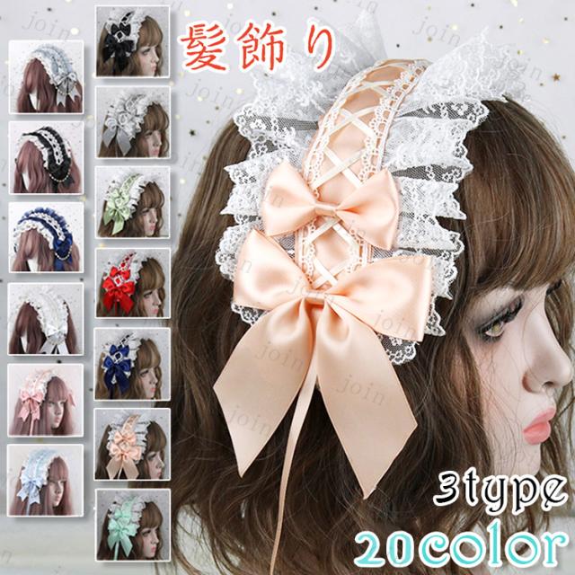 ロリータ カチューシャ (h122#) 当日発送 3type 20color ヘッドドレス 髪飾り レース ゴスロリ メイド リボン ヘアアクセサリー