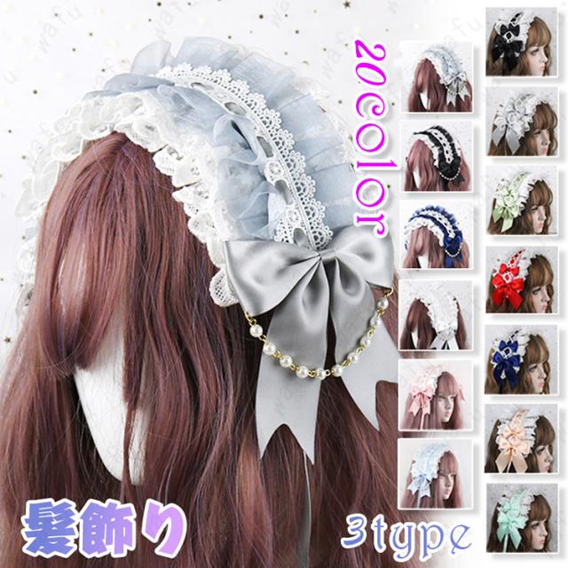 ロリータ カチューシャ (h122#) 3type 20color ヘッドドレス 当日発送 髪飾り レース ゴスロリ メイド リボン ヘアアクセサリー
