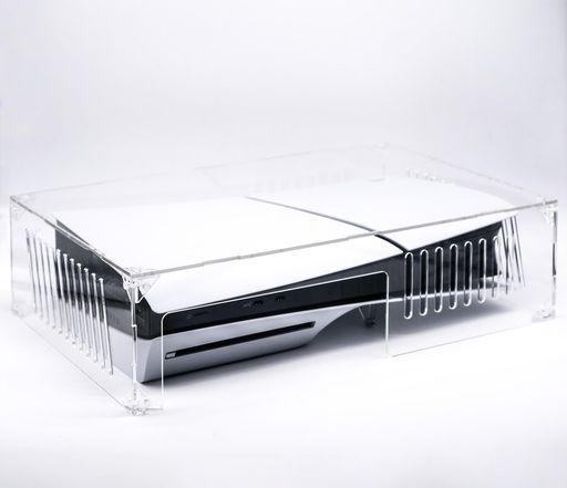 【透明度】透明度が高く高級感あります。透明度の高い厚さ3ミリアクリル板で、PS5をすっぽり被せられます。このカバーをしているPS5を見ると量販店のディスプレイみたいな感じもあります