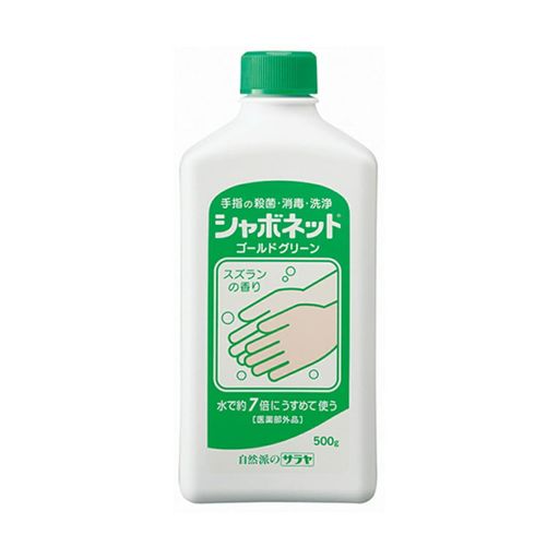 殺菌・消毒ができる、高級感を演出したミルキーグリーンの石けん液です。