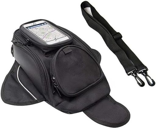 ANSIMPLE バイク用 タンクバッグ ツーリングタンクバッグ マグネット式 追加マグネット付き 2WAY ショルダーバッグ 大容量 ブラック 脱落防止ベルト付き 追加マグネット付き