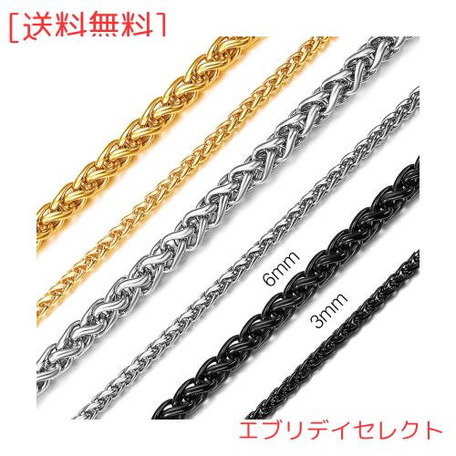 [ChainsHouse] 65cm スピガチェーン ネックレス メンズ 人気 金属アレルギー ステンレス レディース アクセサリー ブラック 黒 幅6mm