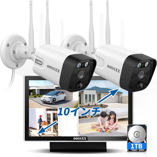 【双方向通話・ダブルアンテナ信号強化・130° 超広角】 防犯カメラ ワイヤレス 屋外 3K 500万画素2台 ワイヤレス監視モニター付き ワイヤレスモニター 監視カメラ 屋外 モニター付き 2台(…