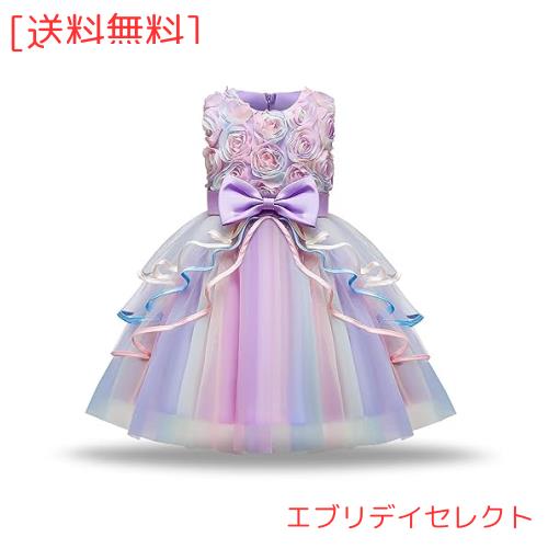 [Kayiyasu] 女の子 ドレス チュールスカート 入園式 ピアノ 発表会 フォマール ドレス 虹色 花柄 蝶結び ワンピース プレゼント