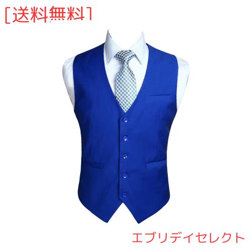 [Enlision] ブルー スーツ ベスト メンズ ベスト 男性用 結婚式チョッキ ベスト 大きいサイズ ジレベスト Vネック ポケット 尾錠付き 紳