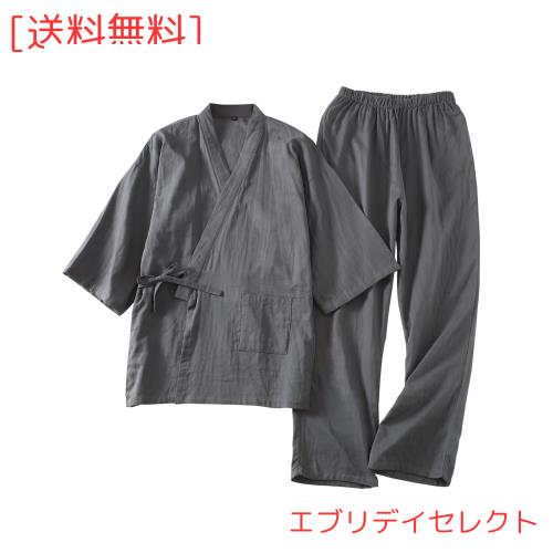 [Comfort U] 作務衣 メンズ 浴衣 甚平 寝間着 綿100% 二重 ガーゼ パジャマ 男性用 紳士甚平 7分袖 前開き 甚平セット 通気性 吸汗 和服