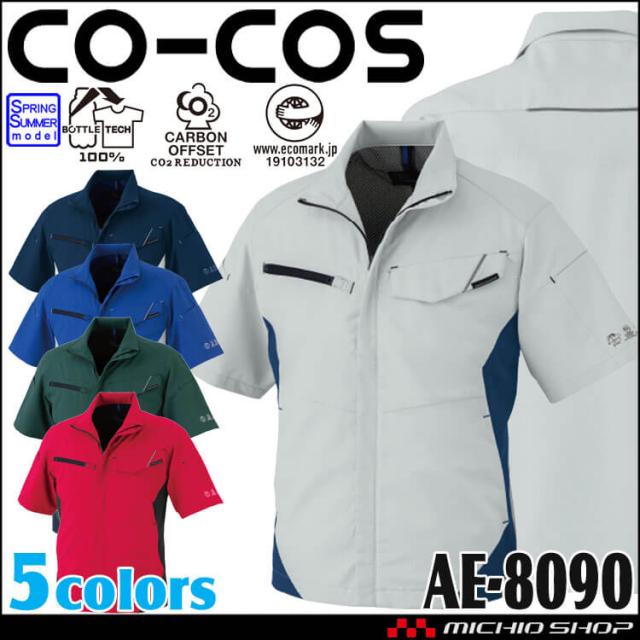 コーコス CO-COS エコ・ストレッチ半袖ブルゾン AE-8090 UVカット 春夏 作業服 SS〜3Lサイズ