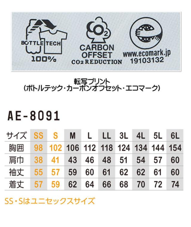 コーコス CO-COS エコ・ストレッチ長袖ブルゾン AE-8091 UVカット 春夏 作業服 SS〜3Lサイズ