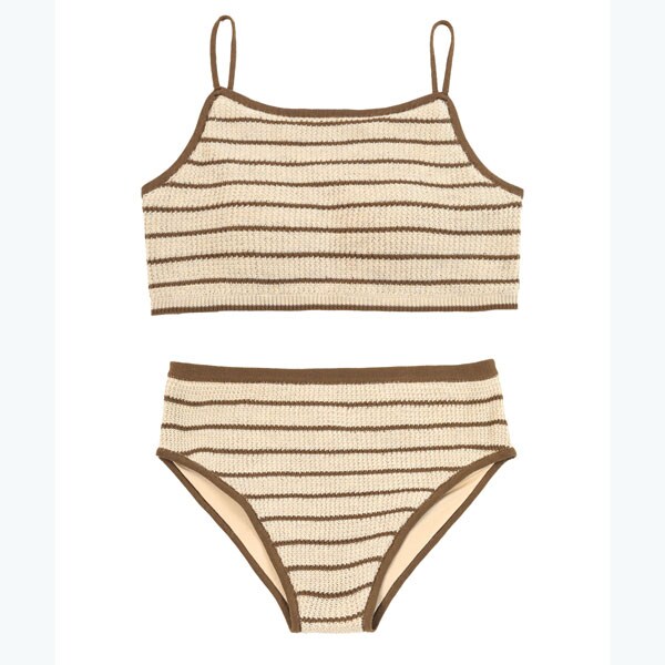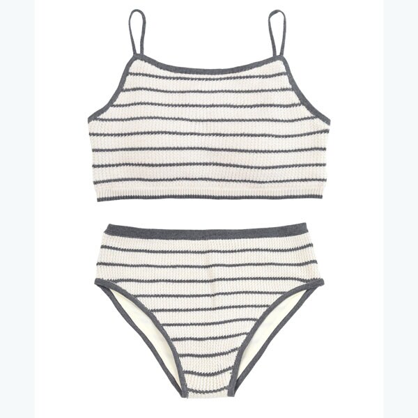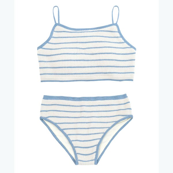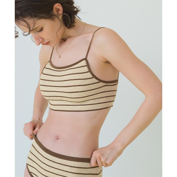 ・編み柄にこだわった夏らしい細ボーダーニット水着。