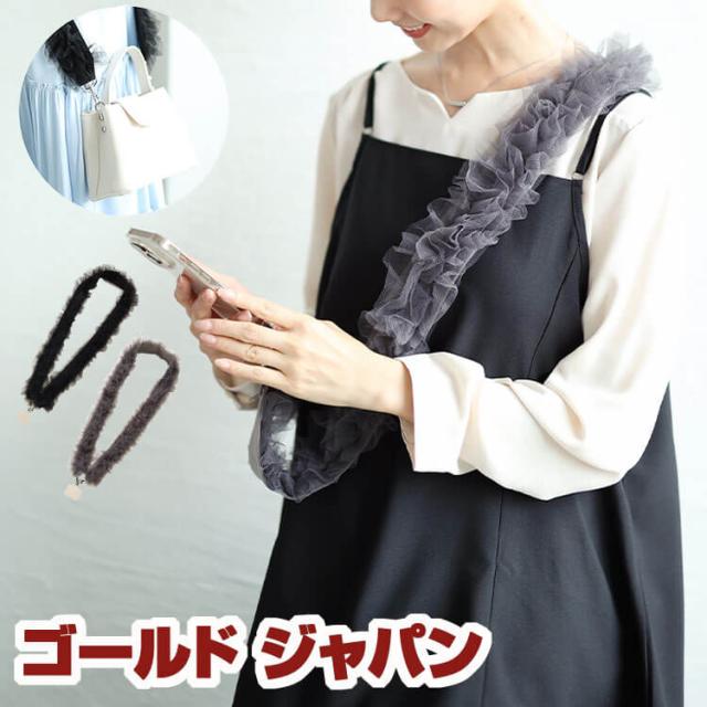 秋新作 大きいサイズ レディース スマホショルダー 小物 スマートフォン スマホ ストラップ ワイドレーススマホストラップ バッグショルダー チュール レース フリル 太め アクセサリー ショルダー バッグ 2way 春 秋 冬 夏 F フリー ブラック 黒 グレー ゴールドジャパン