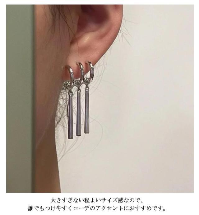 スティックピアス 3連 ピアス リングピアス ハーフフープピアス 片耳用 両耳用 ロングピアス 揺れる メンズ レディース ゾロームピアス ゾロピアス コスプレ シンプル ストリート 韓国風 カジュアル 送料無料