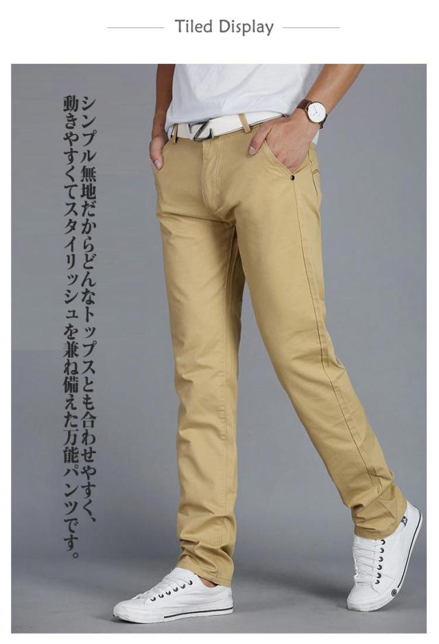 | 全7色!細身なのに動きやすいスリムフィットチノパンツが春夏新登場! 太すぎず細すぎず、穿くだけで誰でも簡単にジャストなサイジングに、コーデをかっこよく見せます。 しっかりとした綿混素材を採用し、かなり柔らかく、ストレスフリー。 春色追加で全7色の豊富なカラバリ展開します。 シンプル無地だからどんなトップスとも合わせやすく、動きやすくてスタイリッシュを兼ね備えた万能パンツです。 | |