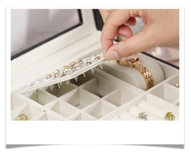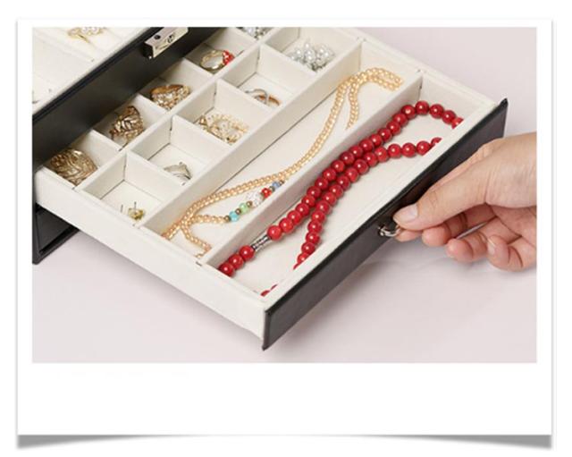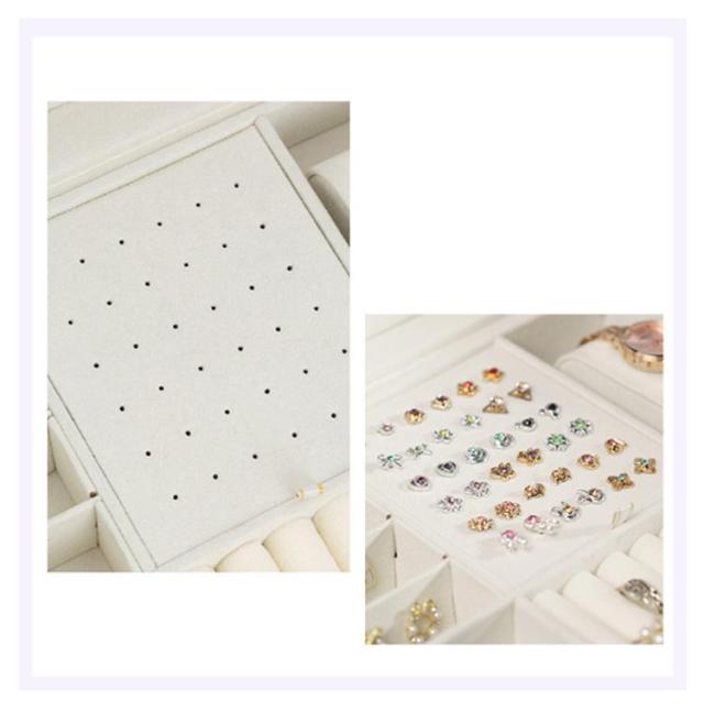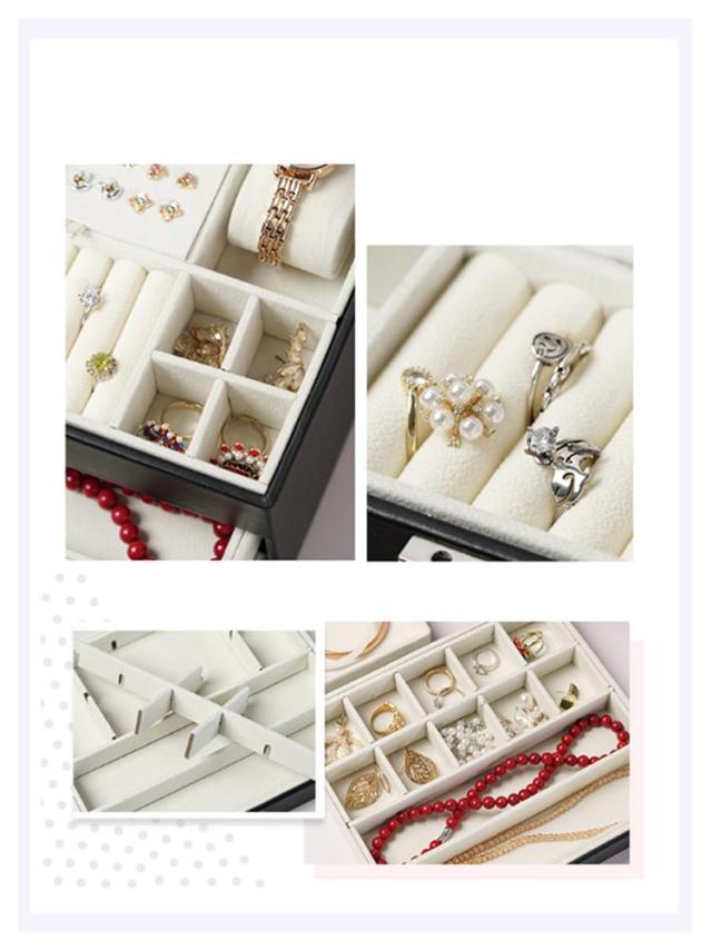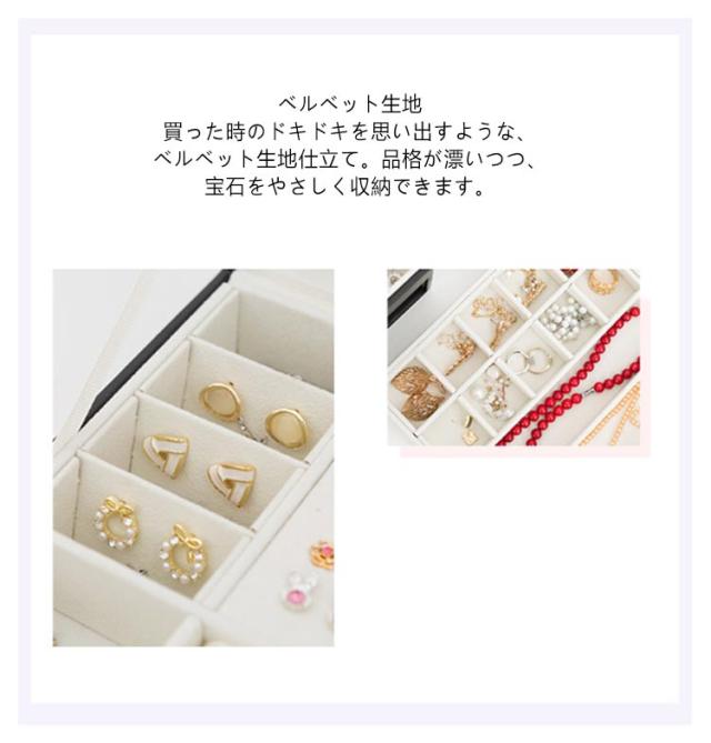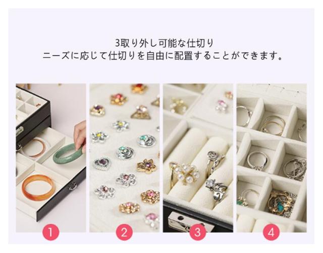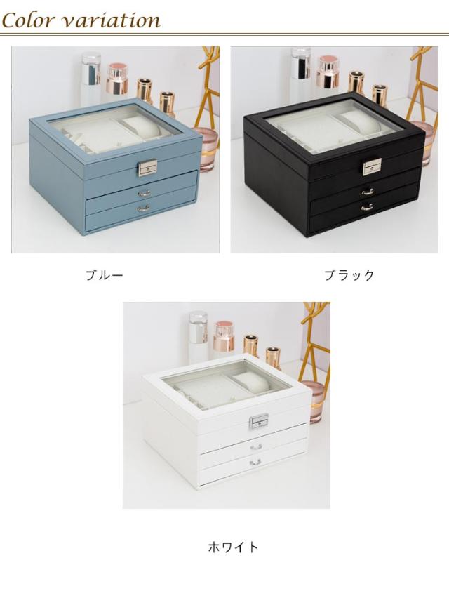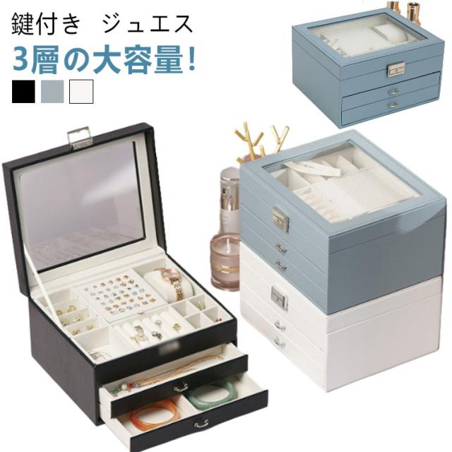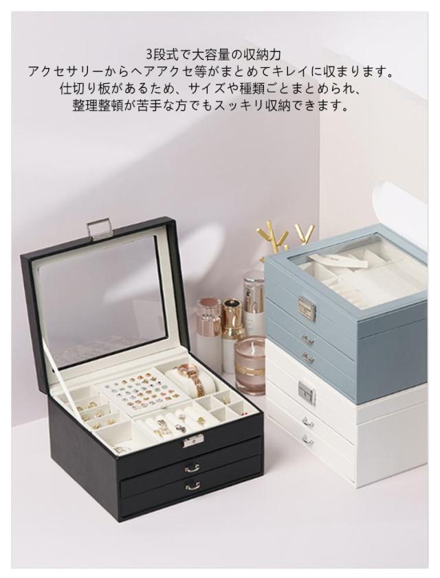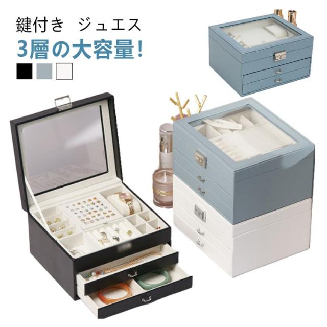 | 3層の大容量! 鍵付き ジュエス 【Point】 ・大容量3段タイプの天窓付きアクセサス ・ファッション性と実用性に優れたレザーを使用 ・レイアウト自由!取外し可能なフリース製間仕切り ・カギが付属しており、プライバシーを守ります。 ・選べる3カラー ■大小さまざまなアクセサリーをたっぷり収納でき、パッと見で見つけやすい!探しやすい!! 使い勝手抜群のアクセサリーケースです。 細かいアクセサリーの紛失もしっかり防いで、ノンストレスでおしゃれを楽しみましょう♪ ■3段式で大容量の収納力 アクセサリーからヘアアクセ等がまとめてキレイに収まります。仕切り板があるため、サイズや種類ごとまとめられ、整理整頓が苦手な方でもスッキリ収納できます。 ■3取り外し可能な仕切り ニーズに応じて仕切りを自由に配置することができます。 ■窓から見える お気に入りのアクセサリーを見ることができる天窓付き。窓から見える1段目には、特別なお気に入りを... ■ベルベット生地 買った時のドキドキを思い出すような、ベルベット生地仕立て。品格が漂いつつ、宝石をやさしく収納できます。 ■鍵付きで、お子様やペットのイタズラ等から大切なアクセサリーをしっかり守ってくれます! シークレットボックスとしても◎ ■厳選されたレザーを使用 ファッション性と美しさを兼ね備えており耐摩耗性と実用性にも優れています。とっておきのコレクションをしまうのにふさわしいおしゃれなデザインです。 デザインはシンプルで、お部屋に置いても違和感なく馴染むホワイト・ブラック・ブルーの3カラーから、お好きな色をお選びいただけます♪ | |