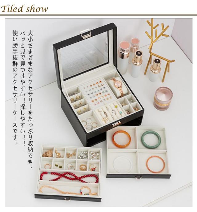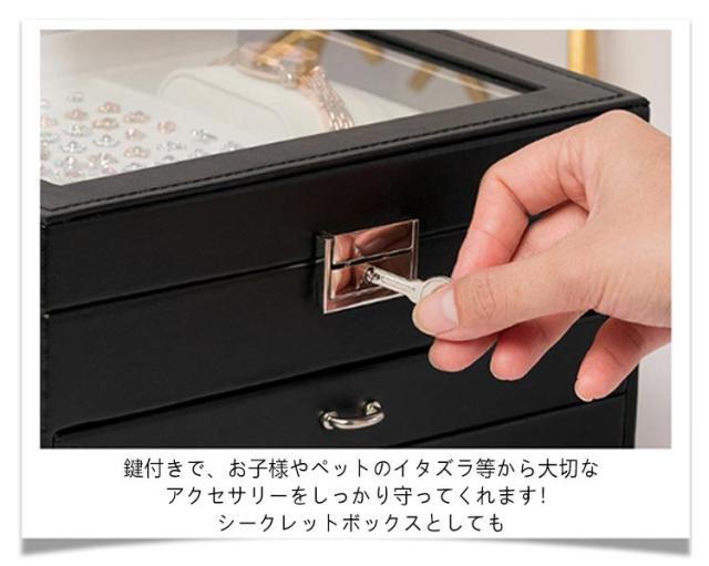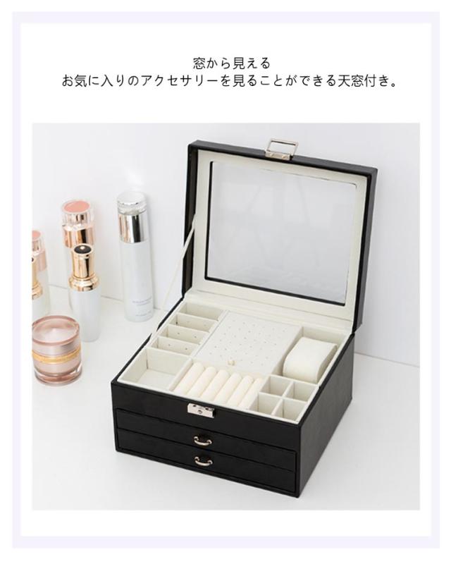 ジュエス 3段式 高級 大容量 鍵付き 天窓付き ジュエリーケース アクセサリー収納 宝石箱 子供 大人 アンティーク おしゃれ かわいい アクセサリーケース 収納 ボックス ピアス ネックレス イヤリング 指輪 腕時計 小物入れ 箱 レザー