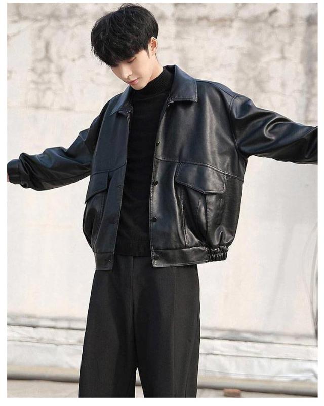 レザージャケット メンズ PUレザー ビッグシルエット ライダースジャケット バイクジャケット 裏起毛 アウター コート フェイクレザー ジャケット ジャンパー ショート丈 大人男性 カジュアル ブルゾン 春秋 送料無料