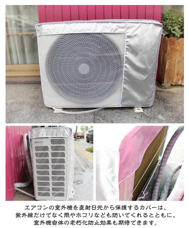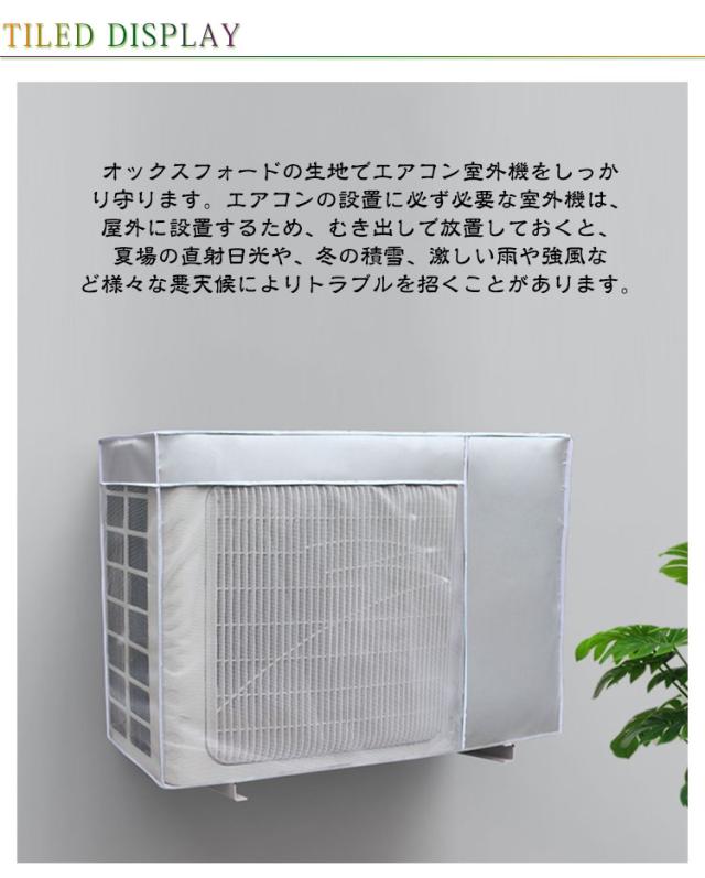 | 【エアコン室外機カバー】オックスフォードの生地でエアコン室外機をしっかり守ります。エアコンの設置に必ず必要な室外機は、屋外に設置するため、むき出しで放置しておくと、夏場の直射日光や、冬の積雪、激しい雨や強風など様々な悪天候によりトラブルを招くことがあります。 【汚れ・劣化防止】エアコンの室外機を直射日光から保護するカバーは、紫外線だけでなく雨やホコリなども防いでくれるとともに、室外機自体の老朽化防止効果も期待できます。 【遮熱・負担軽減】光反射素材を採用し、約40%の熱線をカットし、冷房運転中の室外機の負担を軽くする!直射日光から室外機を守り、 冷房効率のUPを助けます。 【省エネ・取付け簡単】設置し易く、取り外しも簡単です。カバー下部に固定用紐があって縛ることによって取付固定されます。また使用しない時にはコンパクトに収納でき、劣化して処分する際も便利です。 【悪天候対策】このエアコン室外機遮熱カバーは撥水加工生地を採用しているので、雨水を撥ね付け、泥やホコリなどがこびりつくのを防止できます。直射日光、雨、雪などの過酷な環境から室外機を守ってくれ♪雨天でも快適に過ごせます。 | |