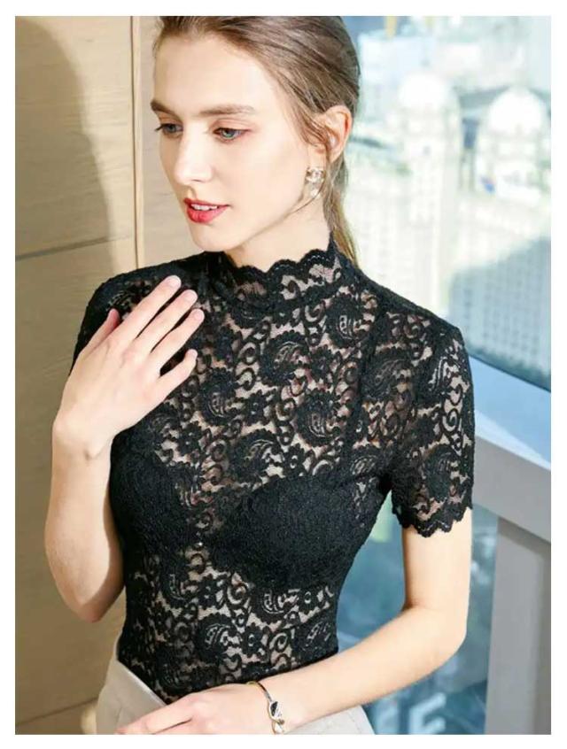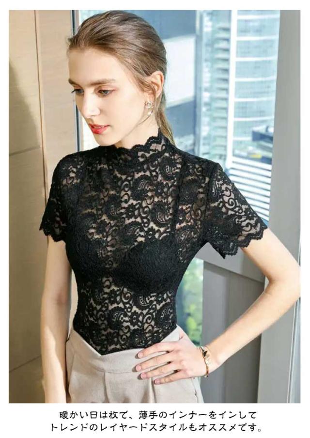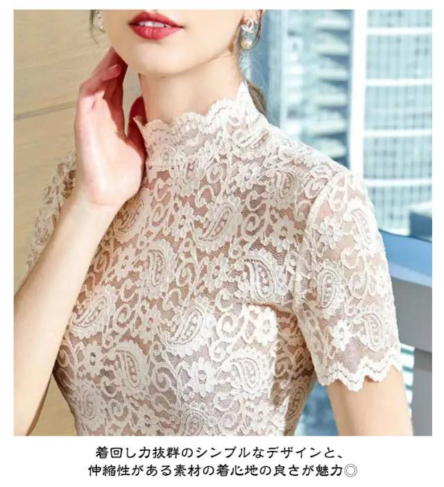 シアートップス レディース 総レース 重ね着 半袖 薄手 シースルー 無地 花柄レース 可愛い トップス タートルネック 伸縮性 カジュアル ハイネック 透け感 インナー シアートップス エレガント お洒落