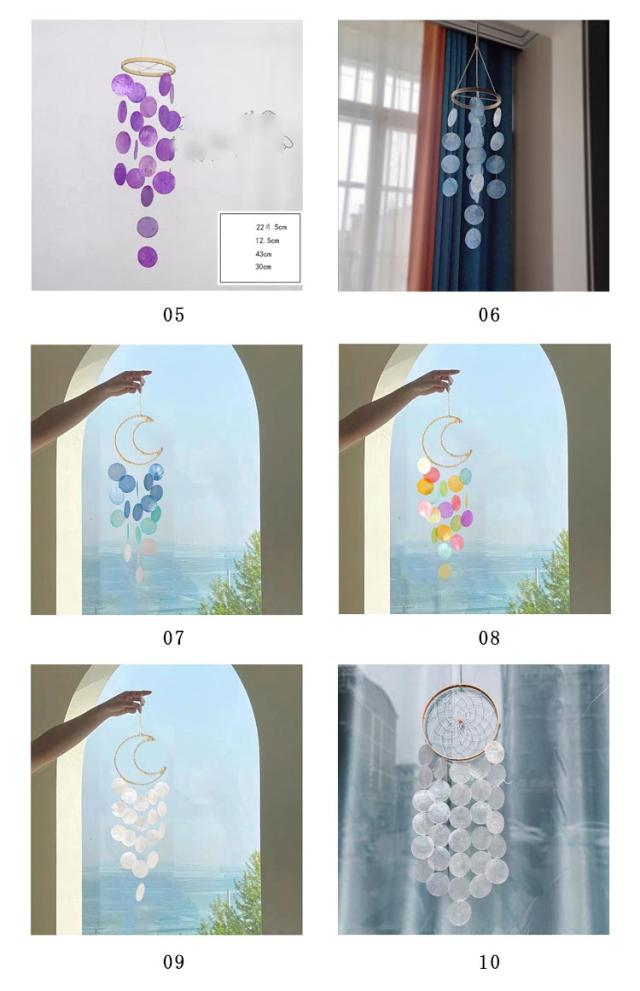 | 爽やかな貝殻の音色が心地いいお洒落な風鈴。透き通るような美しい音色のウインドチャーム。 音色だけでなくデザイン性にもこだわった、風鈴といえども季節問わず飾れるアイテム。 貝殻のパーツは1枚ずつ丁寧にくり抜き、すりガラス風に仕上げたものに色付けし、しっかりと吊下げたもの。 貝殻の少しずつ重なり合って出来た程よい透け感の美しさに見惚れてしまいそう。 10タイプ展開なのも嬉しいですね♪お部屋のインテリアとして、吊るすだけの省スペースで手軽に飾れます。 | |