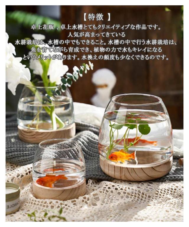 おしゃれ S 金魚鉢 金魚 金魚鉢 室内 メダカ おしゃれ ガラス金魚鉢 M L 観賞植物ホルダー ミニ水槽 小さな水槽 金魚水槽 小さな丸い透明なガラス花瓶 木製ベース付きデスクトップ水槽 鉢 水耕植物花瓶 おしゃれ 小シンク 水槽 ガラス 室内花瓶 創作卓上金魚鉢