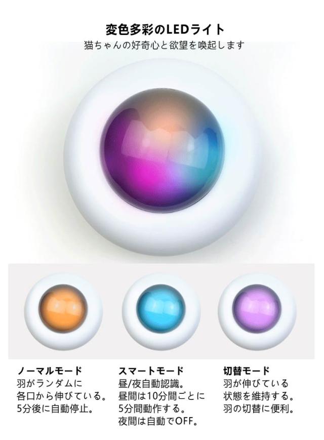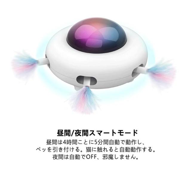 | UFO電動猫じゃらし 自動走行・羽根自動伸縮・多頭対応 USB充電式 <お勧めポイント> ●2in1二倍の楽しさ 猫じゃらしの予測不可の動きが猫の狩猟本能を覚醒させ、おもちゃ本体も360°ぐるぐるっと移動でき、猫ちゃんの好奇心と欲望を喚起します。 ●狩猟本能を覚醒させ! 猫じゃらしの予測不可の動きがランダムに飛び出す、猫の注目を集める動作音、狩猟本能を覚醒します!猫の友達が一緒に遊べる。 ●じゃらし交換可能 電動猫じゃらしは3本が付属しており豊富で交換簡単、いつまでも飽きない。 ●昼間/夜間スマートモード 昼間は4時間ことに5分間自動で動作し、ペッを引き付ける。猫に触れると自動動作する。夜間は自動でOFF、邪魔しません。 ●変色多彩のLEDライト 猫ちゃんの好奇心と欲望を喚起します ・ノーマルモード 羽がランダムに各口から伸びている。5分後に自動停止。 ・スマートモード 昼/夜自動認識。昼間は10分間ごとに5分間動作する。夜間は自動でOFF。 ・切替モード 羽が伸びている状態を維持する。羽の切替に便利。 移動できるおもちゃ 猫じゃらしを伸びながらグルグルと移動できる猫が大興奮複数の猫が同時に遊べる。 キャスター付き 360°不規則運動・障害物自動回避 *移動機能を制御するスイッチがある ペットの毛を自動で取り除き 毛除けカバーと併用すると、猫をからかいながら自動的に地面の毛を取り除きます。 | |