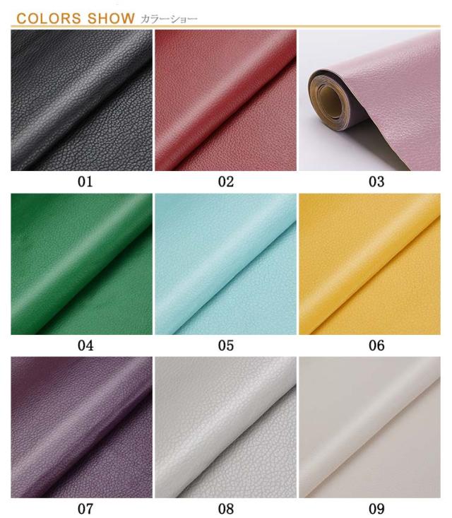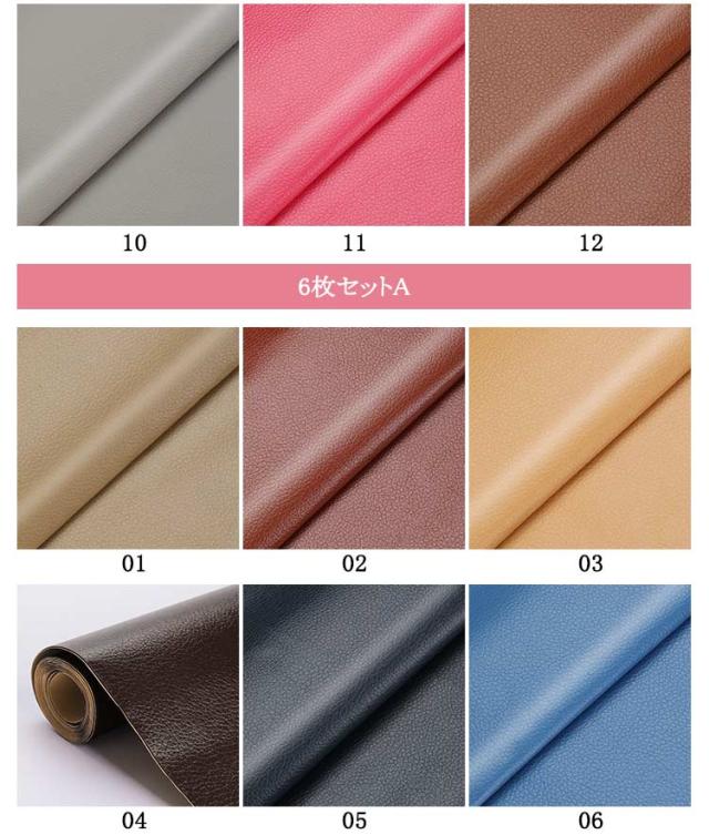 | 6枚セット / 全24色 自然な皮革の質感と同様に、柔らかい手触りの触感で高品質レザー生地です。 伸びが良いので、曲面にも馴染ませることができます。 貼るレザーであるので、生地裏面の接着剥離紙をはがしてすぐに使えるのはとても便利です。 接着剥の粘着力が優れていて簡単に剥がれません。 車の補修シート・バイクの補修シート・ソファー補修シートに最適な素材です。 見た目は新品のようになります。また、椅子座面、カバー、財布などのDIYにも最適な手芸皮の素材です。 初心者からプロフェッショナルまでご使用いただける貼るPU合皮レザーの定番な皮革です。 | |