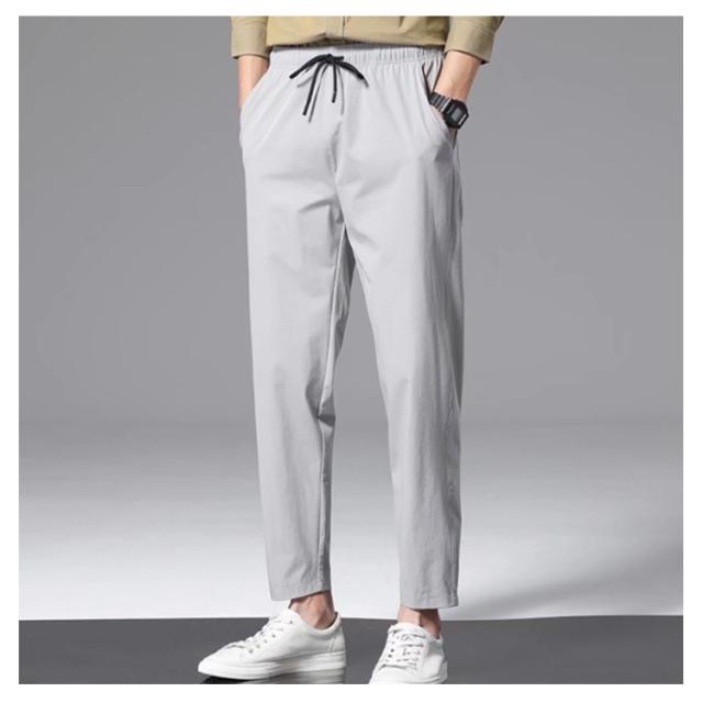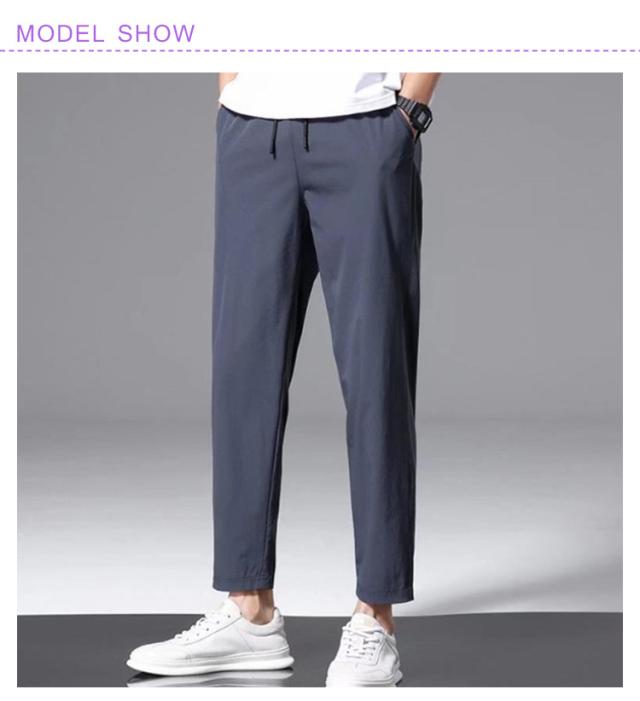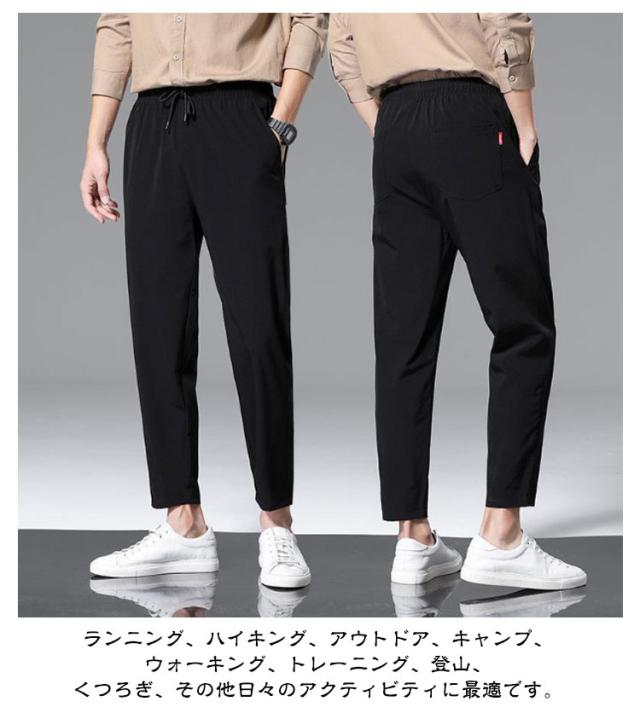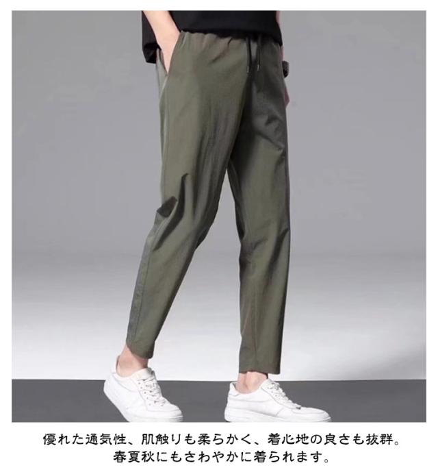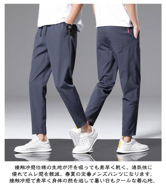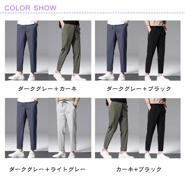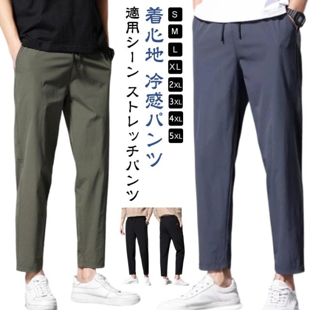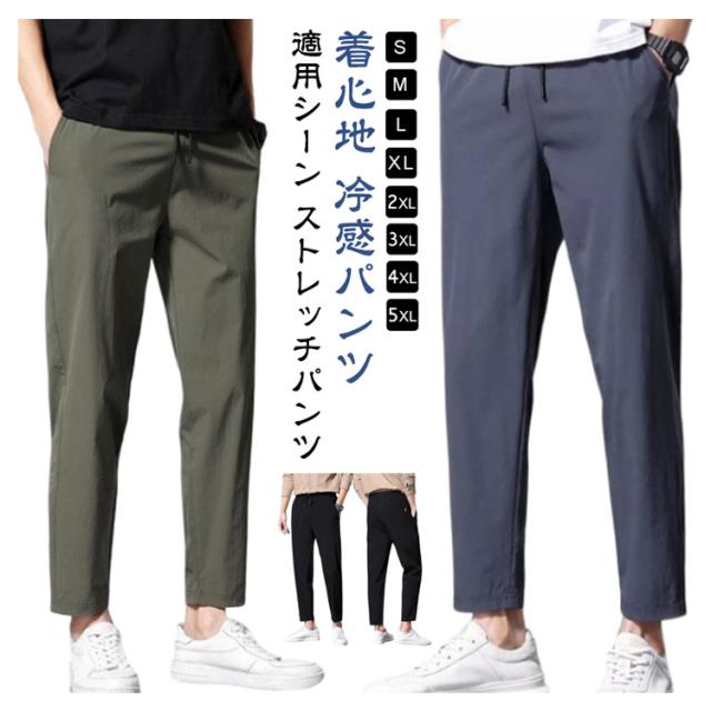 スポーツウェア 吸水速乾 ストレッチ 【2枚セット】九分丈 メンズ 接触冷感 夏 ズボン 涼しい チノパンツ 涼感 清涼 ゴルフウェア チノパン ゴルフパンツ パンツ アイスシルクパンツ ストレート ロングパンツ 無地 軽量 薄手 通気 ストレッチパンツ 大きいサイズ
