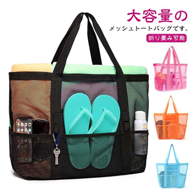 トートバッグ 軽量 プールバッグ ビーチバッグ 大容量 防水 ビーチバッグ メッシュバッグ 折り畳み可能 ビーチトートバッグ ビーチ/ショッピング/水泳/ジム/スパ/温泉/旅行用 肩掛け 手提げ お風呂バッグ 温泉バッグ バッグ 大きめ 送料無料