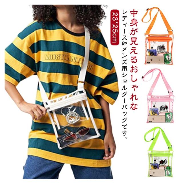 | 中身が見えるおしゃれなレディース&メンズ用ショルダーバッグです。 内ポケット付きが嬉しい♪ | |