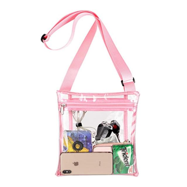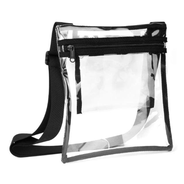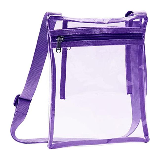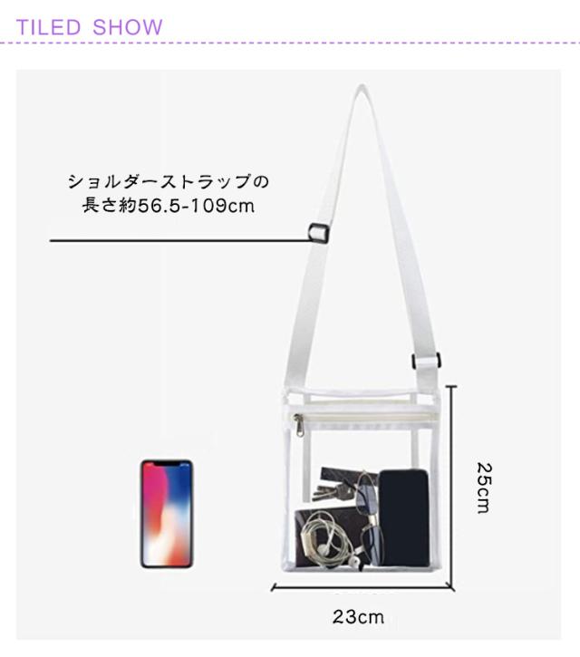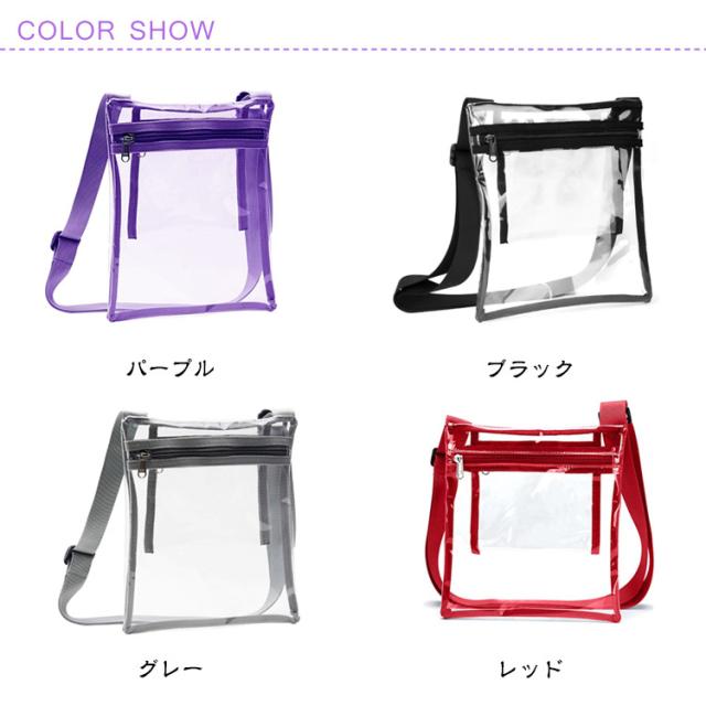 肩紐サイズ調節可 レディース 単色 透明 肩掛けバッグ メンズ ショルダーバッグ カバン 送料無料 ポシェット ジップアップ ファスナー カジュアル 鞄 ユニセックス おしゃれ かわいい 中身が見える 内ポケット付き 無地 シンプル 送料無料 紫 黒 白