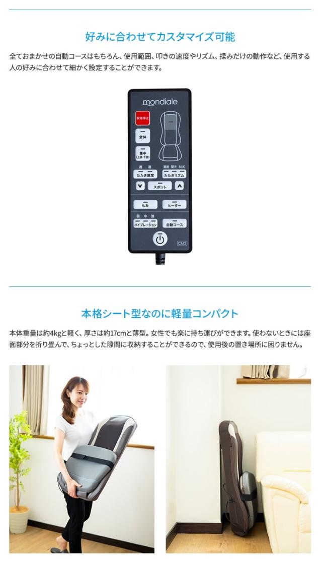 管理医療機器 モンデール コンパクトマッサージシート 極上たたき CM3 (送料無料) マッサージ リラックス 寝ながら 肩甲骨 腰 首 ケア 椅子 ソファ