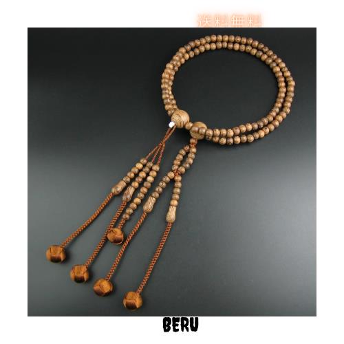 日蓮宗男性用の正式なお数珠でございます。素材は、風合い良い艶消し加工の鉄刀木でございます。鉄刀木ははっきりな木目があり、非常に重たく硬い木で、まるで「鉄の刀のようだ」ということからその名を呼ばれています。 その重硬で緻密な材質から、「紫檀(シタン)」「黒檀(コクタン)」と並び、唐木の三大銘木として古くから珍重されてきました。今回は特殊な木ビーズ加工技術を使用して、表面の木目がくっきりとしていて、丸い模様が完全に表示されています。