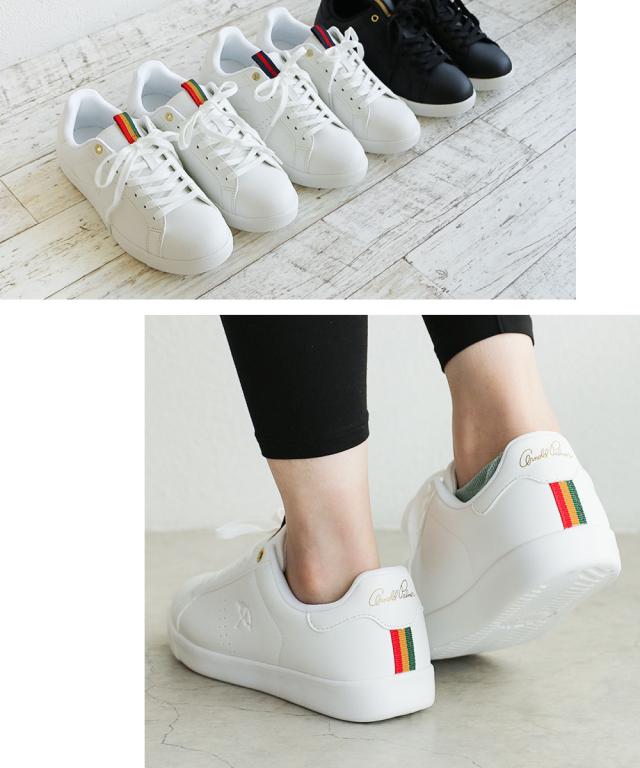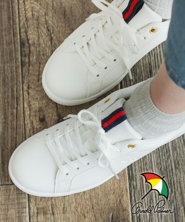 アーノルドパーマー スニーカー レディース 黒 ローカット 軽量 コートスニーカー ウェービングテープ ジュニア 紐靴 運動靴 シンプル 低反発インソール 疲れにくい 通学 通勤 ブラック ホワイト 白 0733