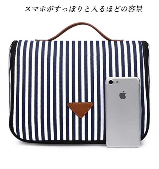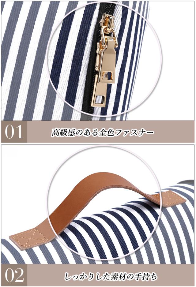 | 【商品説明】 | スマホを立てて収納できるほどの収納機能のあるポーチ 丈夫な帆布素材でネイビーストライプが可愛いマリン調 |