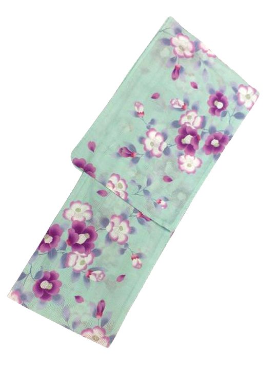 仕立て上がり浴衣 浴衣 綿絽 対応身長 155cm-168cm 綿絽織 水色地 椿 柄No.2470 セットにするとさらにお得!!