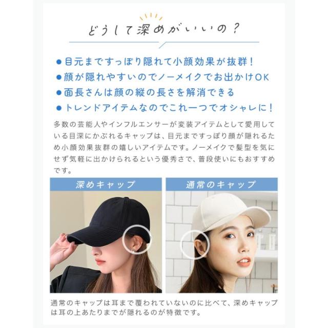 キャップ 深め レディース 帽子 大きい つば長め UVカット 夏 メッシュ 小顔効果 サイズ調節 丸洗い おしゃれ 可愛い トレンド シンプル 無地 メンズ キッズ