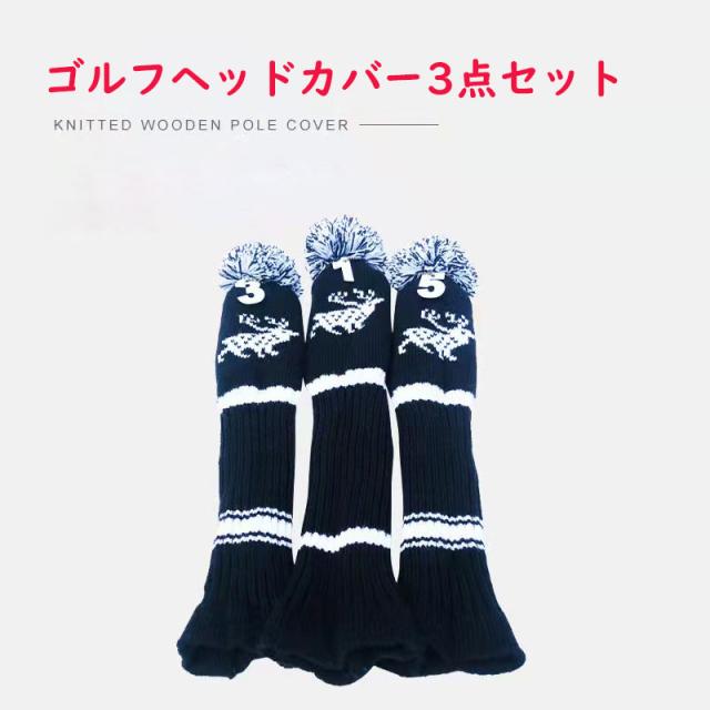 ニットヘッドカバー ゴルフドライバーカバー ヘッドカバー ウッドカバー UT用カバー ゴルフ用品 クラブカバー ニット製 3点セット 数字ペンダント付け