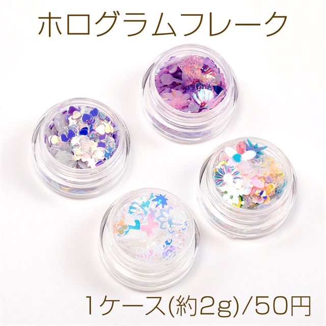 ホログラムフレーク MIX オーロラフレーク レジン封入パーツ スパンコール ネイルパーツ ビニールパーツ クリアケース入り 約2g