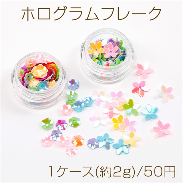 ホログラムフレーク 花 フラワー MIX オーロラフレーク レジン封入パーツ スパンコール ネイルパーツ クリアケース入り 約2g
