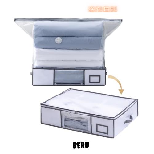便利なデザイン:布団圧縮ボックスが一目で分かる便利な透明窓付きます、内部には留め具用のカラビナも付いています。カードスロットのデザインは記録に便利で、衣服を見つけるのがより便利です。革新的なダブルボーンジッパーを使用し、チャックを閉じると灰色に見えるので開閉の確認に超便利です。 両側に取っ手があり、使用時に持ち上げやすくなっています