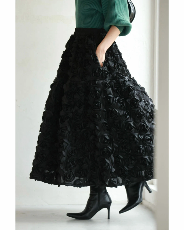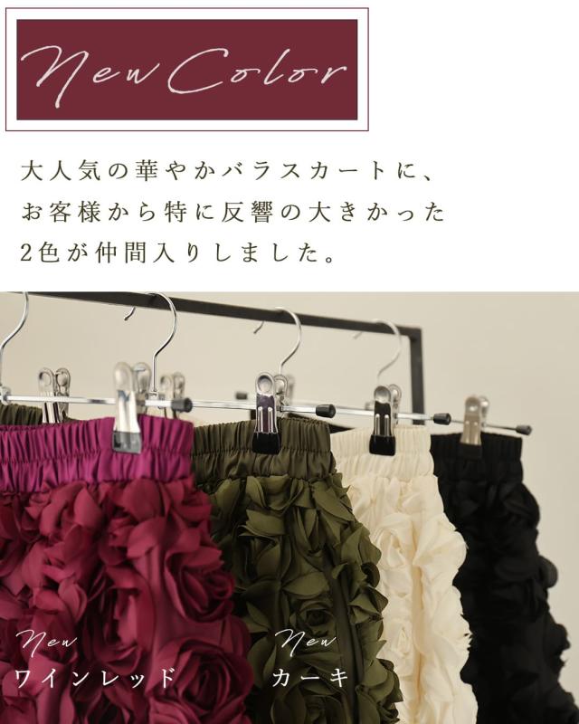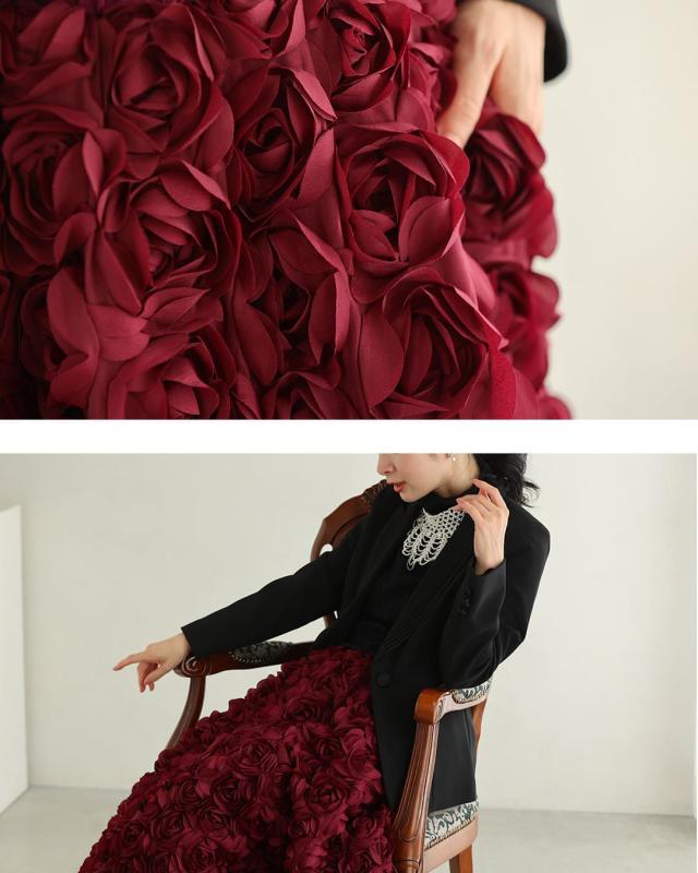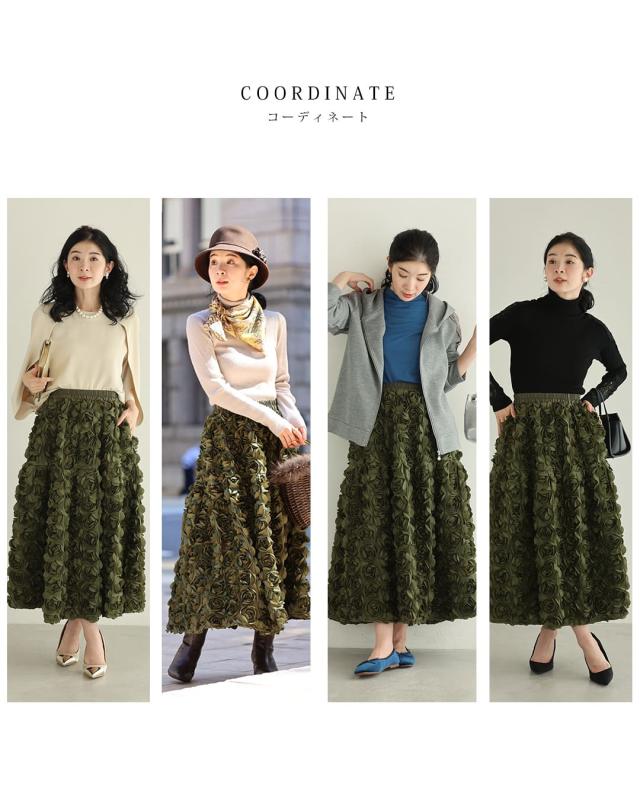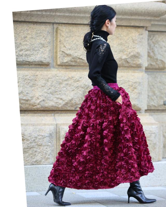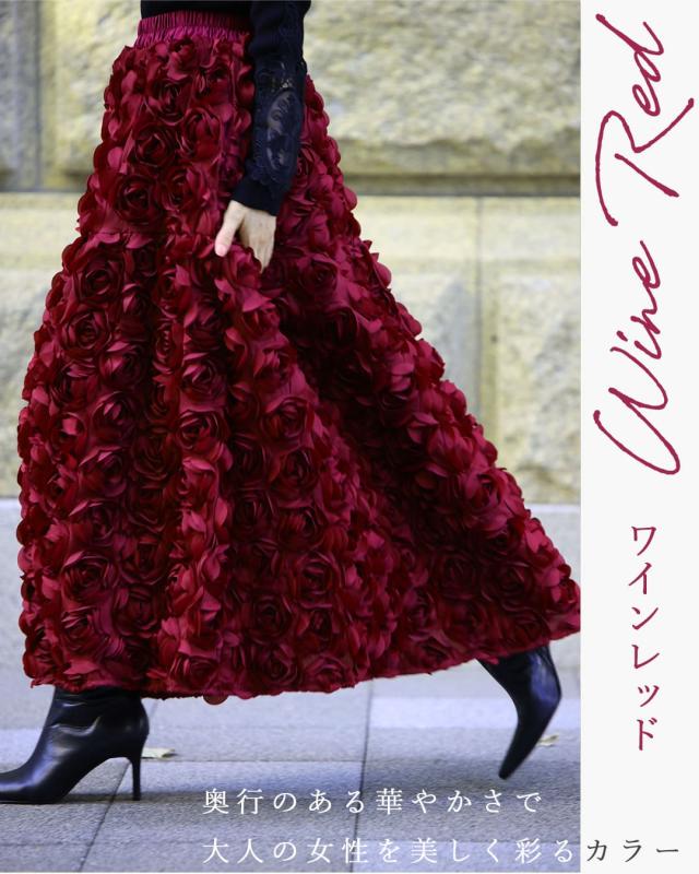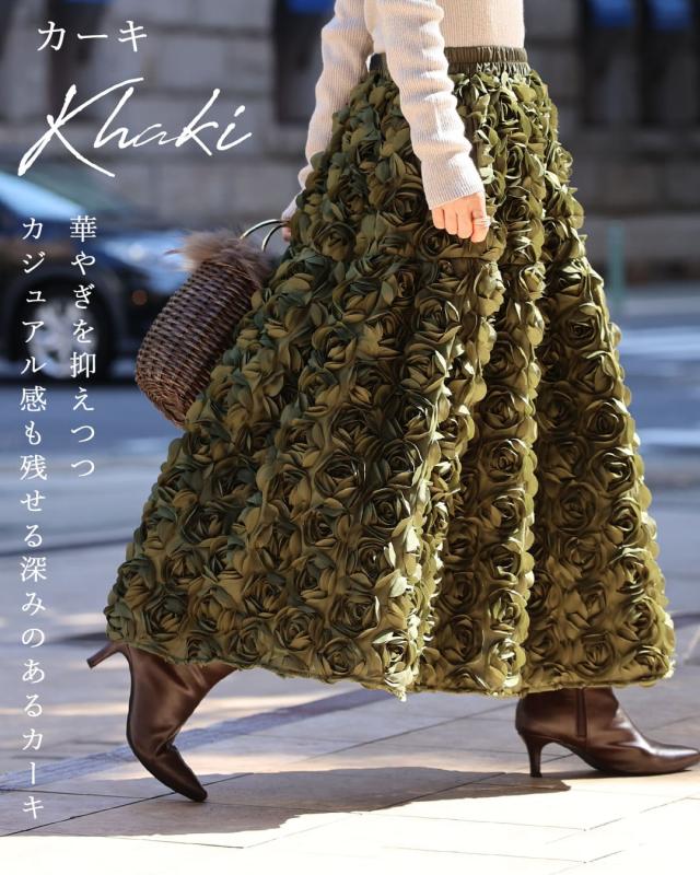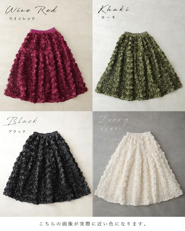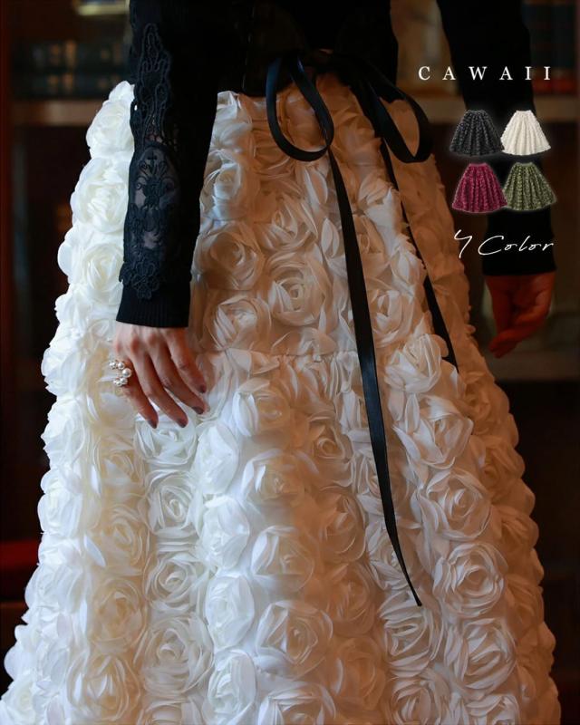 再入荷11月24日 (S~2L対応)バラの花に包まれるボリュームブーケスカート cawaii wkj00066 春 秋 冬 立体感 フラワーモチーフ 体型カバー エレガント 個性的 レディース ファッション 大人