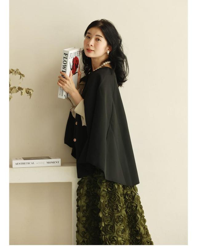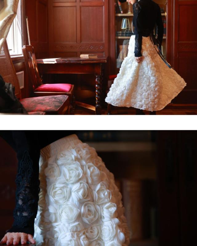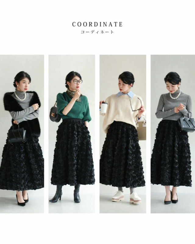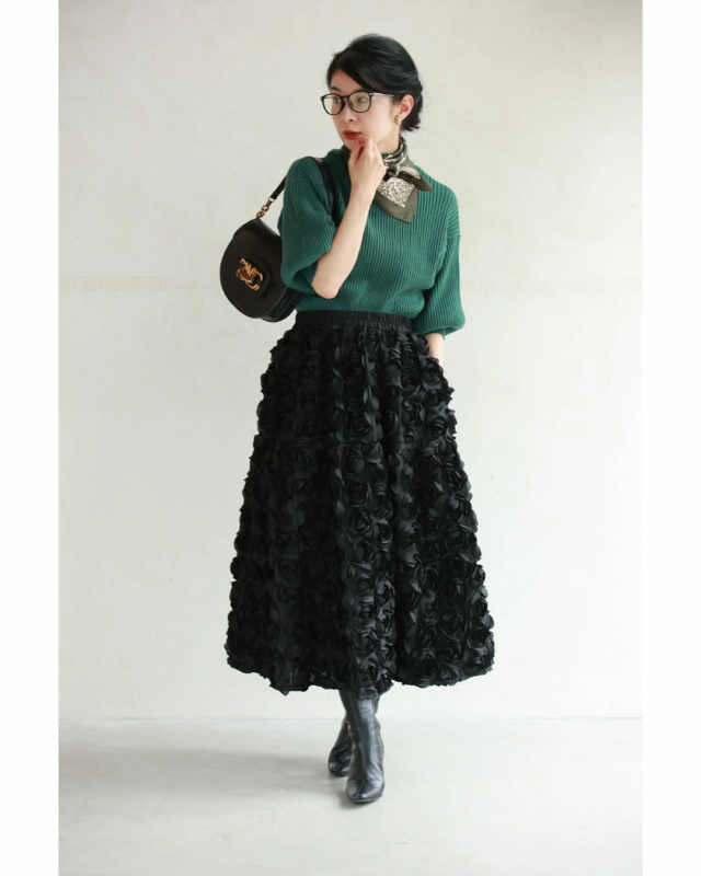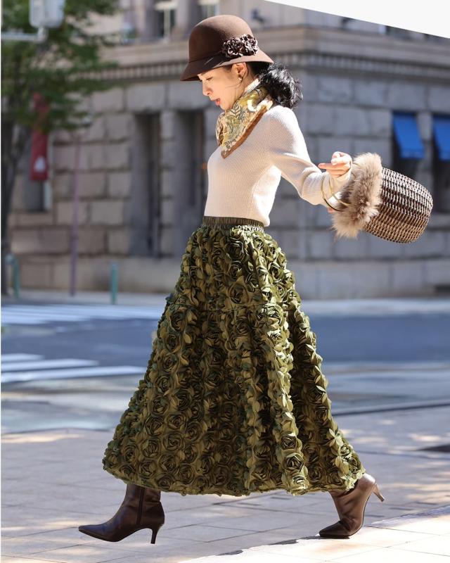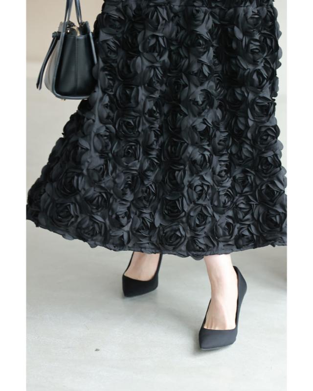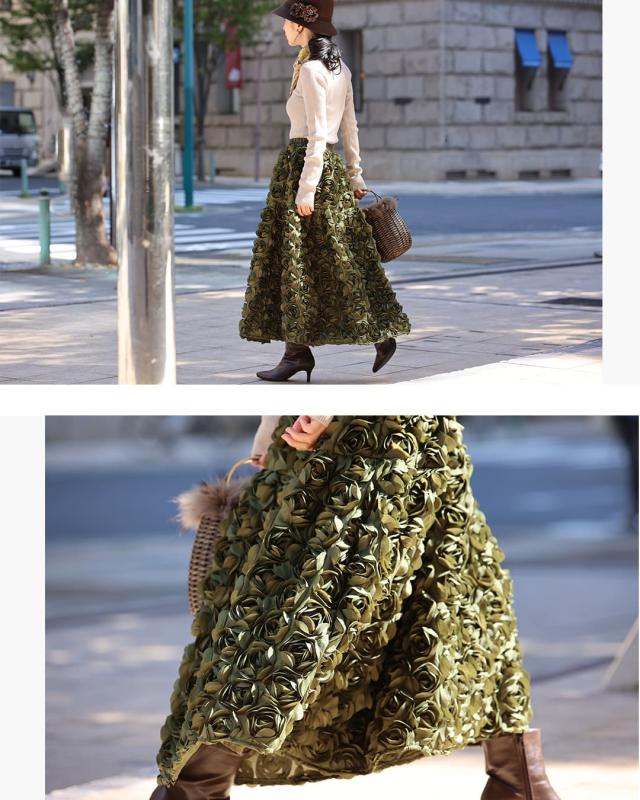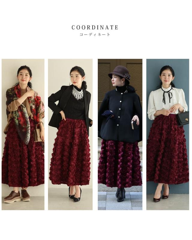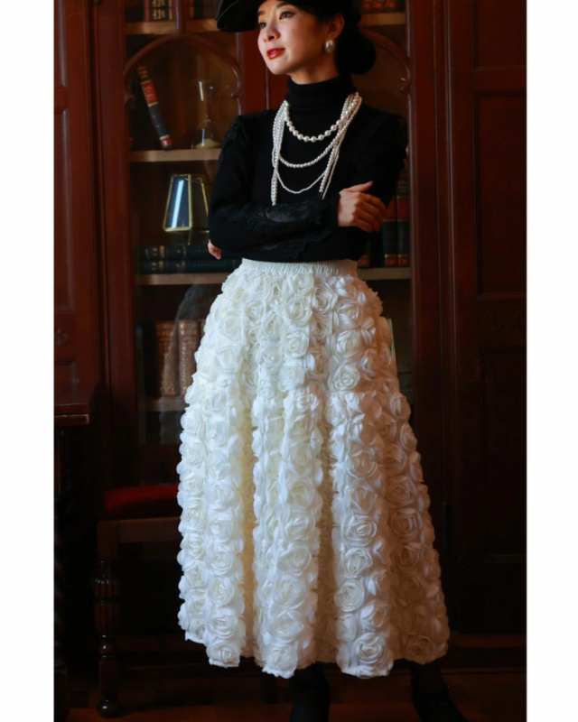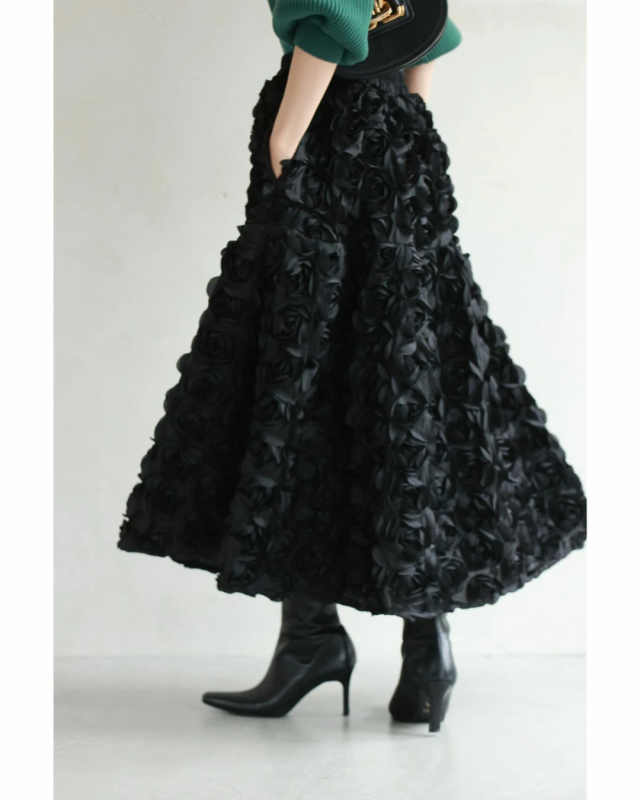 再入荷11月24日 (S~2L対応)バラの花に包まれるボリュームブーケスカート cawaii wkj00066 春 秋 冬 立体感 フラワーモチーフ 体型カバー エレガント 個性的 レディース ファッション 大人