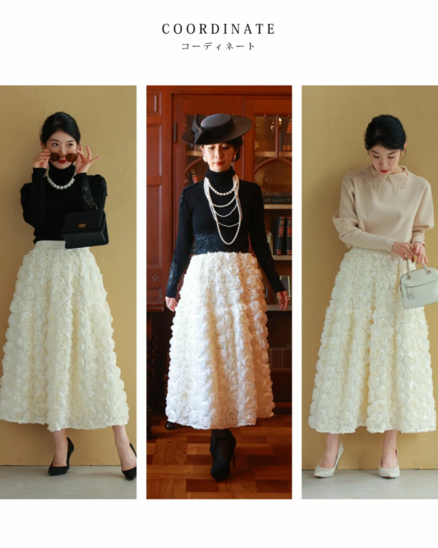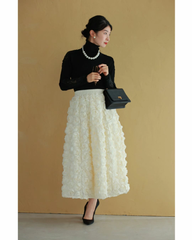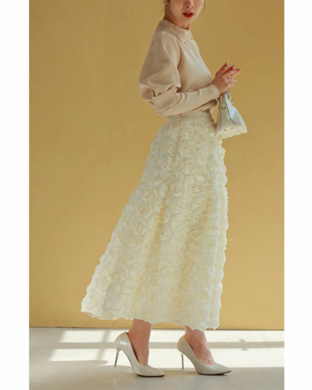 wkj00066 新作 新着 再入荷 CAWAII FRENCHPAVE フレンチパヴェ エレガント ベーシック カジュアル 可愛い かわいい カワイイ おしゃれ オシャレ お洒落 個性 個性的 定番 ベーシック 大人かわいい 大人可愛い 上品 女性らしい デザイン スタンダード ナチュラル きれいめ キレイめ シンプル フェミニン レディース レディースファッション 大人 ママ ミセス 30代 40代 50代 60代 白いバラ 包まれる ボリューム ブーケ スカート ウエストゴム ゴム 総ゴム Sサイズ Mサイズ Lサイズ 2Lサイズ フリーサイズ フリー 小さめ 小さめサイズ小さい 小さいサイズ 低身長 痩せ ほっそり 小柄 細身 標準サイズ 大きめシルエット 大きい 大きめ ビッグシルエット ぽっちゃり F サイズ自由 春 秋 冬 秋服 秋物 冬服 冬物 立体感 フラワーモチーフ ふんわり 体型カバー お尻隠し 太もも隠し お腹隠し ホワイト アイボリー 日常使い オケージョン パーティー 女子会 結婚式 二次会 祝賀会 同窓会