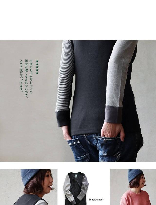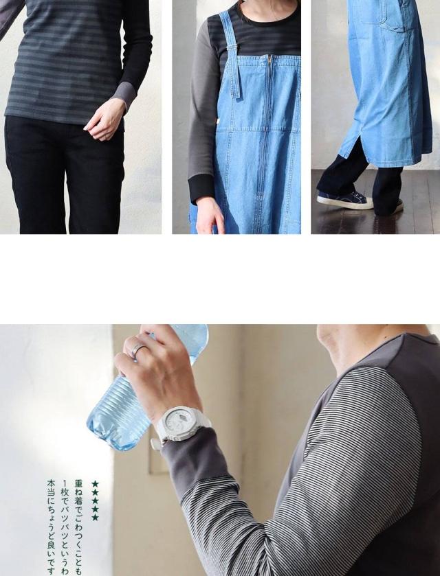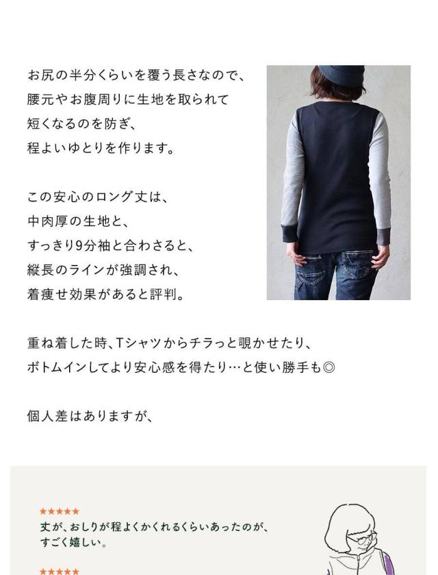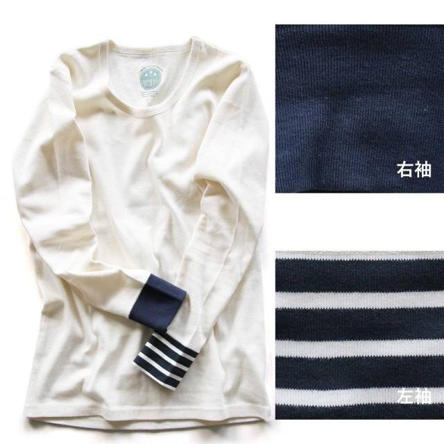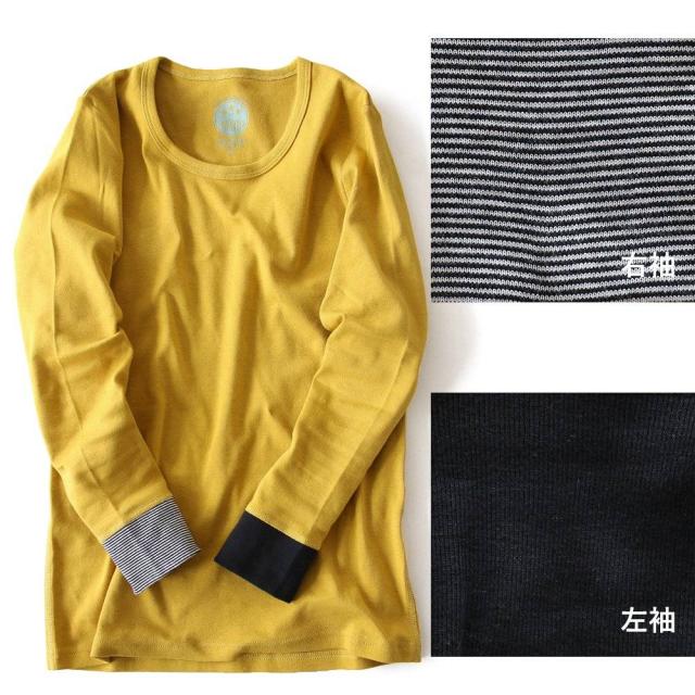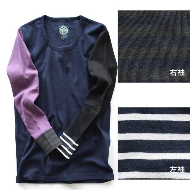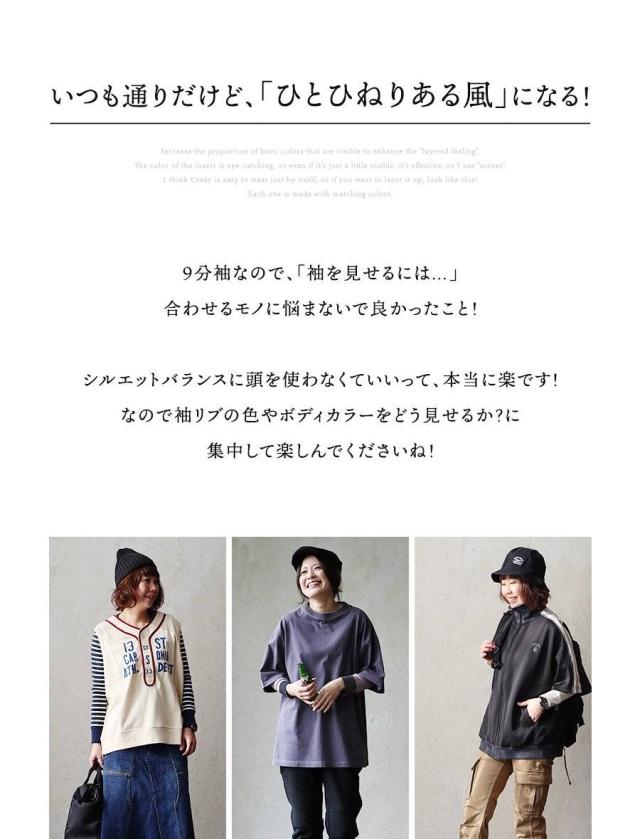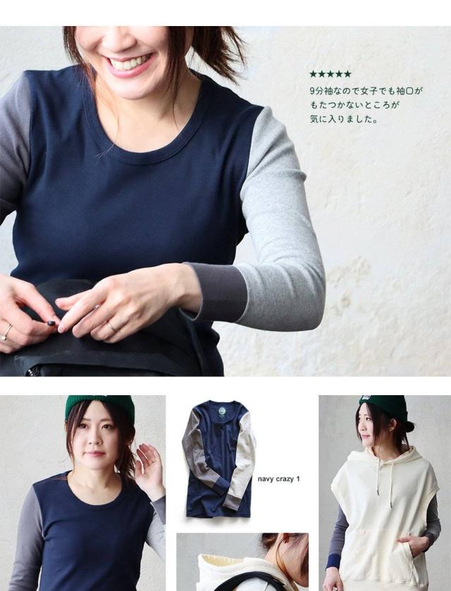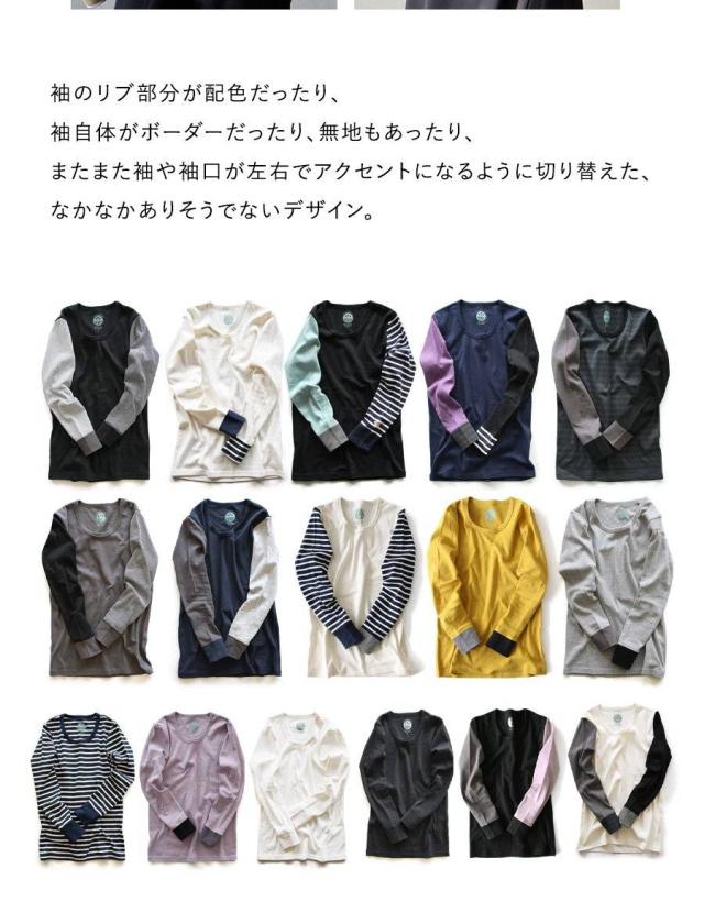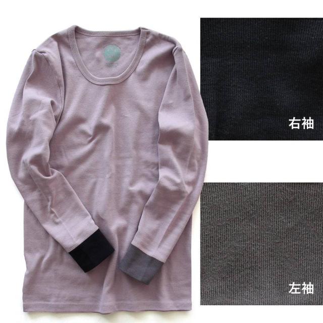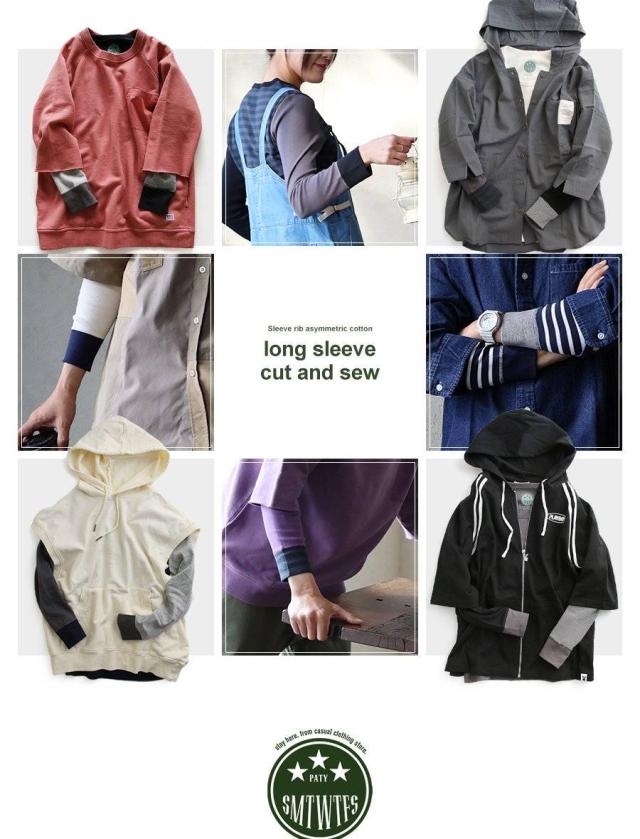 【メール便50】 カットソー 長袖 9分袖 ロングtシャツ 重ね着 すっきり フィット 着痩せ しっかり 丈夫 ストレッチ 柔らかい レディース メンズ 綿100% コットン ロンT インナー トップス tシャツ ロング丈 クレイジー 配色 リブ トップス 洗濯に強い パティ PATY パティ