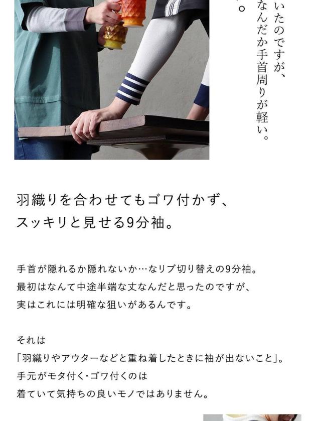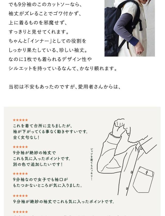 ・羽織りを合わせてもゴワ付かず、スッキリと見せる9分袖。