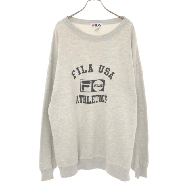フィラ 90s カナダ製 プリント 長袖 スウェット トレーナー M ライトグレー FILA 裏起毛 オールド メンズ