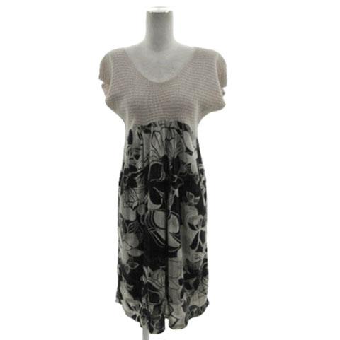 【中古】コラージュ ガリャルダガランテ ワンピース ニット切替え 花柄 ベージュブラウン グレージュ 紫系 紺系 F