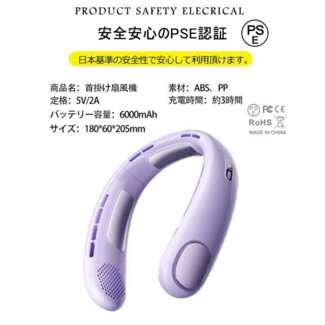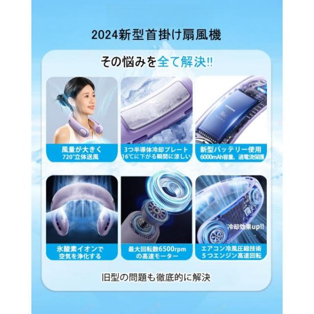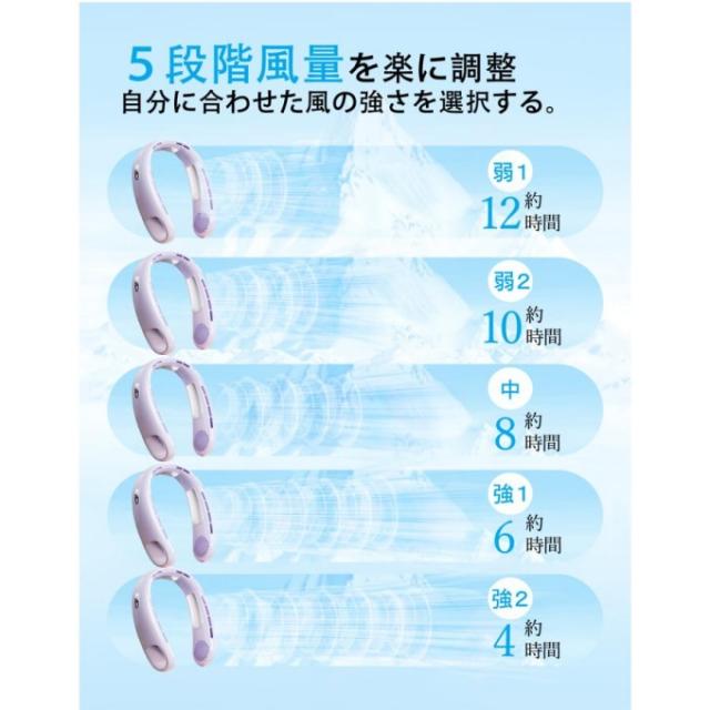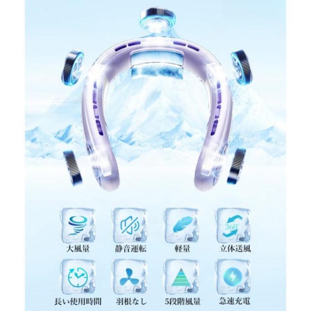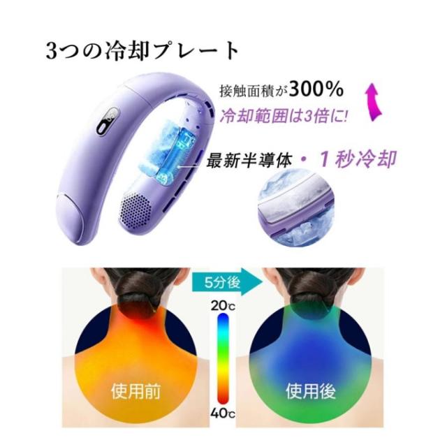 首掛け扇風機 ネッククーラー 静音 羽なし 3つ冷却プレート 6000mAh軽量静音 接触冷感 LED表示 5段階 暑さ対策 母の日/父の日ギフト