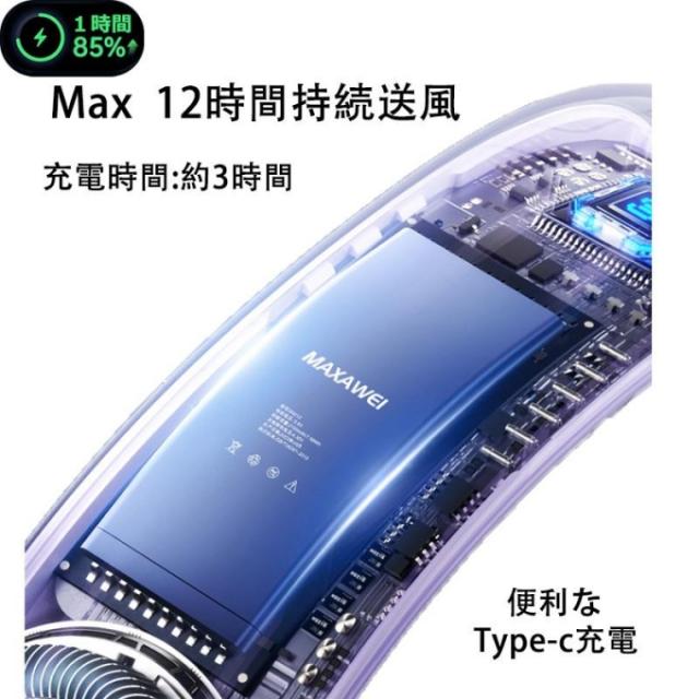 【6000mAh大容量バッテリー・液晶ディスプレイ】安心安全PSE認証済みの6000mAhの大容量バッテリーを内蔵の ネッククーラー長時間つけてもペルチェ素子プレート部分が熱くなりにくく、熱がこもりにくい設計。ダブルタービンファンで髪を巻き込みにくい設計